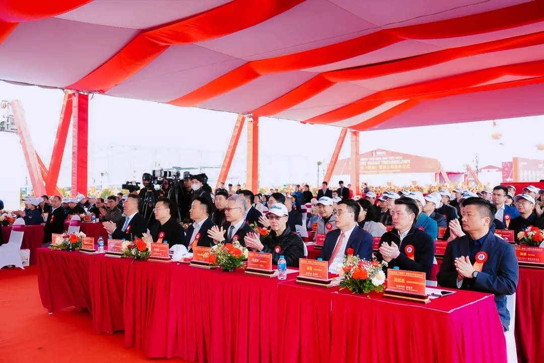 破土呈祥瑞,宏业启新程。2025年3月30日上午,必一运动科技(越南)有限公司奠基仪式在越南北宁省VSIP二期工业园隆重举行。越共中央候补委员、北宁省委副书记、北宁省政府主席王国俊,北宁省VSIP工业区副总经理裴登宣,必一运动科技董事长陈涛、总裁赵启祥等公司领导出席仪式。富士康、歌尔科技、智易科技、啓碁科技、正文科技、蓝微电子、德赛电池等客户代表,生益科技、台光、斗山材料、华正新材、麦德美、安美特、杜邦、太阳油墨、鼎泰高科、三菱电机、Schmoll、大族数控、芯碁微装、保德科技等41家合作伙伴,共计约150人应邀共同见证这一重要时刻。